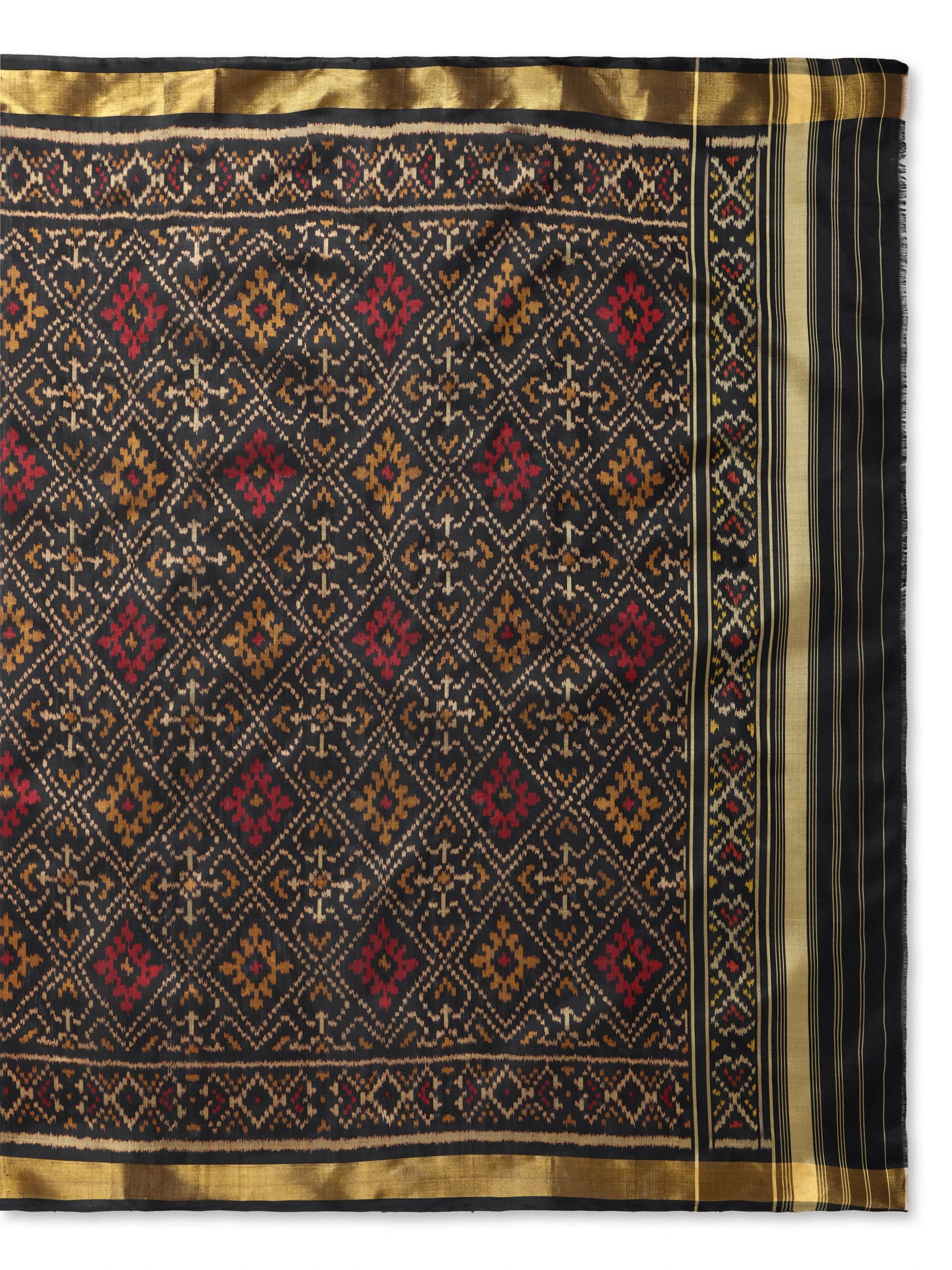 Authentic Handwoven Black Patan Patola Silk Dupatta | Intricate Geometric Design