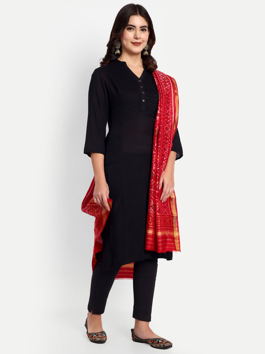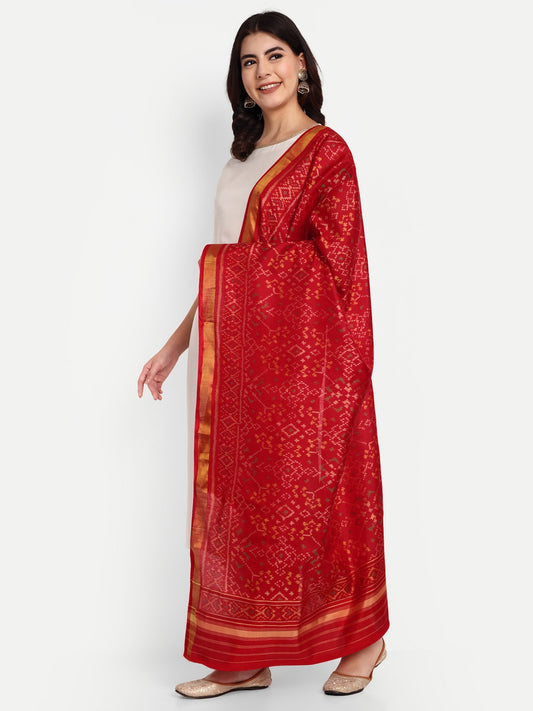 Red Handwoven Patola Stole - Traditional Geometric Design | Perfect for Festive & Ethnic Wear